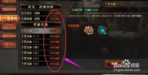 进入该游戏其它模式,点击左边(活动)——(千里单骑),把使命全都接上。