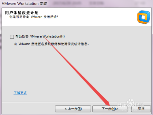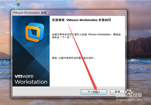 双击vmware workstation法式,然后会弹出一个安装窗口,点击下一步。