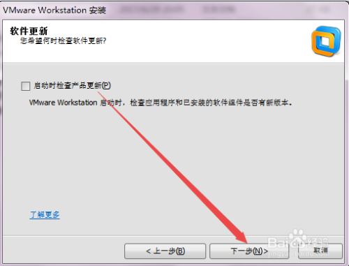 然后选摘要安装的目次,默认是安装在C盘的,可以按照现实需要选择 下一步;将 启动时查抄产物更新 前面的勾去失落,点击下一步;再将帮忙改善前面的勾去失落,下一步。