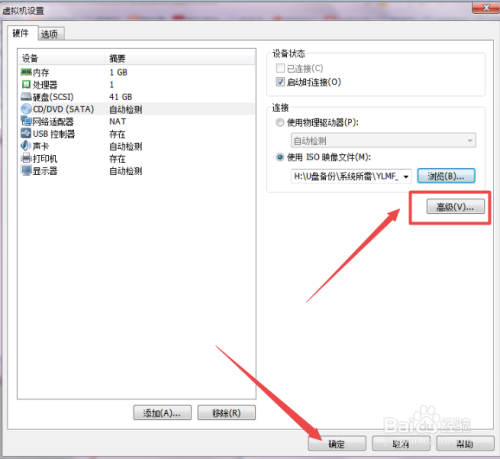 然后回到一个中点击 CD/DVD 选项;在打开的页面中选择为 利用ISO镜像文件 ,找到适才筹办好的win7系统镜像文件;然后点击下面的高级,选择为第三个, 也就是IDE,点击 确定。下面就起头安装win7系统了。