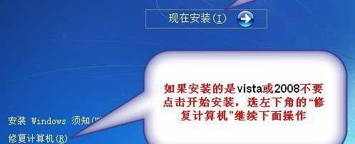 呈现安装界面后,一路点安装就行。(若是安装的是vista或2008要先点击安装界面的”修复计较机“,不是可忽略)(如下图)