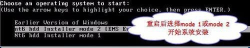重启中呈现选择启动项,选择mode1进行安装(mode1不可再重启选择mode2)