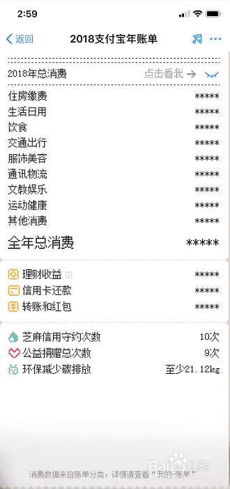 账单提现的是2018年1月1日-12月31日经由过程付出宝的资金流水环境,包罗消费、理财和转账等。