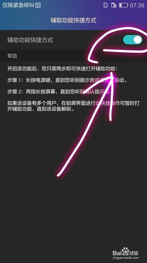 最后,我们将该功能开启即可,当我们利用该快捷体例时按照该功能的提醒信息操作即可。