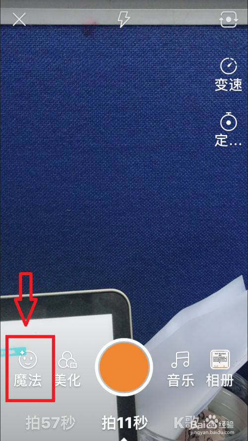 - 登录快手,进入拍摄页面,点击“魔法”——“萌面”,选择“Kmoji”模子即可进行拍摄。