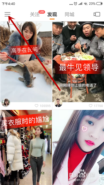 我们看看快手官方的诠释然后再去具体看看,在快手里点击左上角【三】。