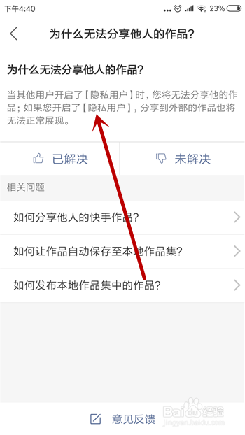 如许我们就能看到【为什么无法分享他人的作品】,点击打开。