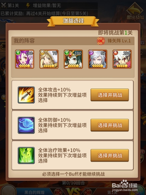 接着点击右下角的从头起头,然后可以选择增益技术,建议前十关选择加进犯力的增益技术。