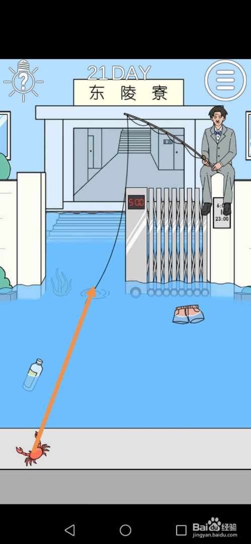 将螃蟹拖动到水草处,然后点击宿舍就可以过关了。