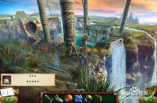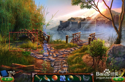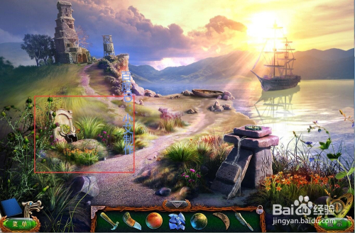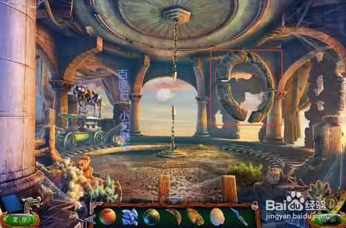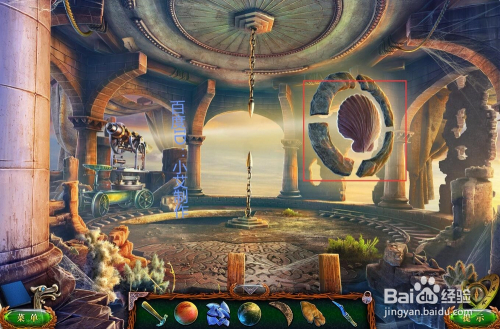 接着去灯塔塔顶,在图示的位置放上贝壳