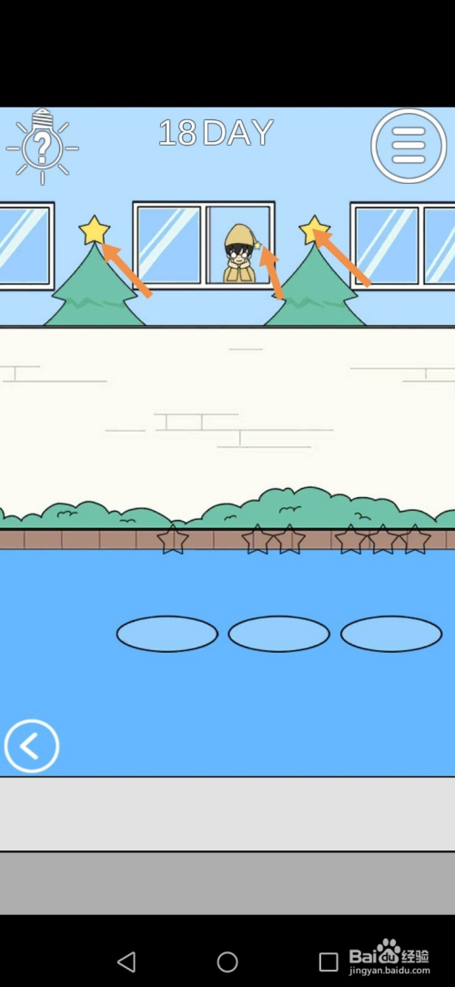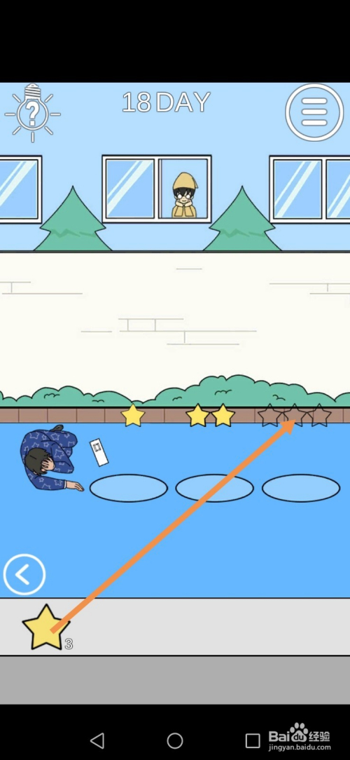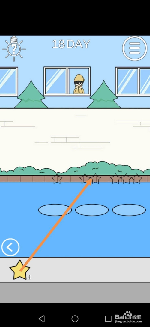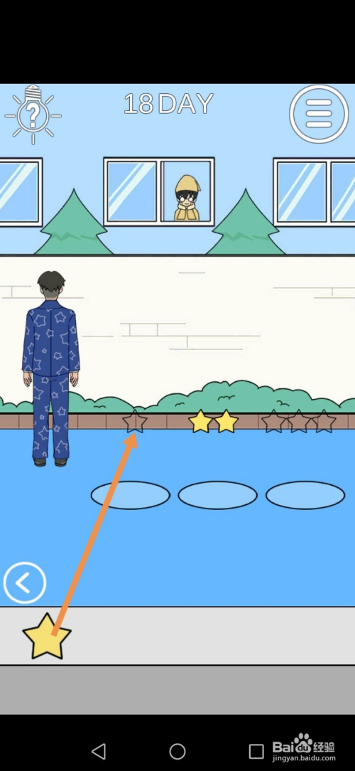 第18关先点击标的目的右箭头到右边去。在右边,点击下图中箭头标注的星星。