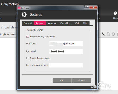 进入到settings的选项之后,然后进入到Account settings中进行genymotion的账号和密码即可。