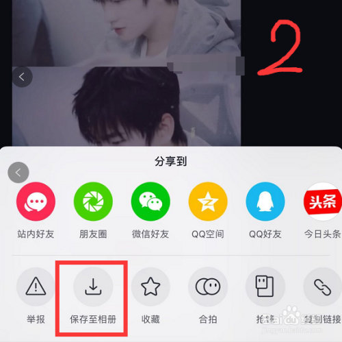 点击短视频右下角的【转发】按钮(如图1)。点击后,屏幕下方会弹出如图2所示的选项,点击【保留至相册】选项,将短视频保留到手机相册中。