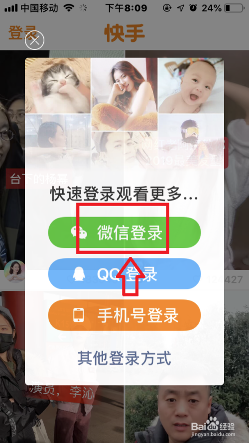 点击左上角“登录”,选择登录体例,好比微信登录——确定登录,登录“快手”app。
