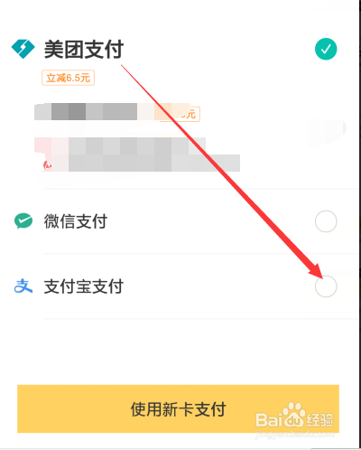 然后大师在页面上只会看到有美团和微信付出两种体例,这时大师把页面标的目的上滑