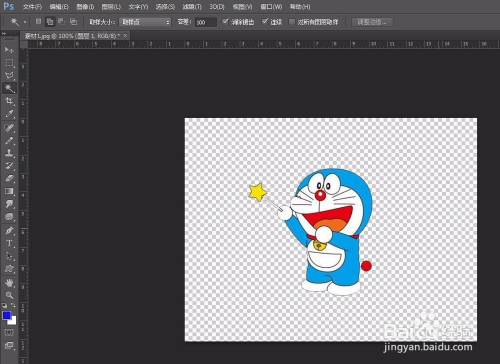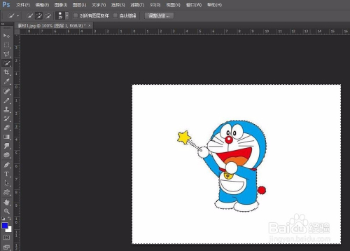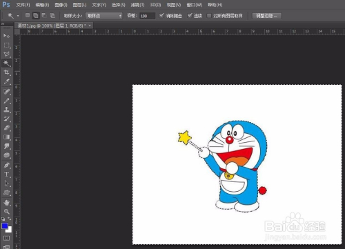 第四步:在左侧东西栏中选择“魔棒东西”,单击图片布景区域选中。