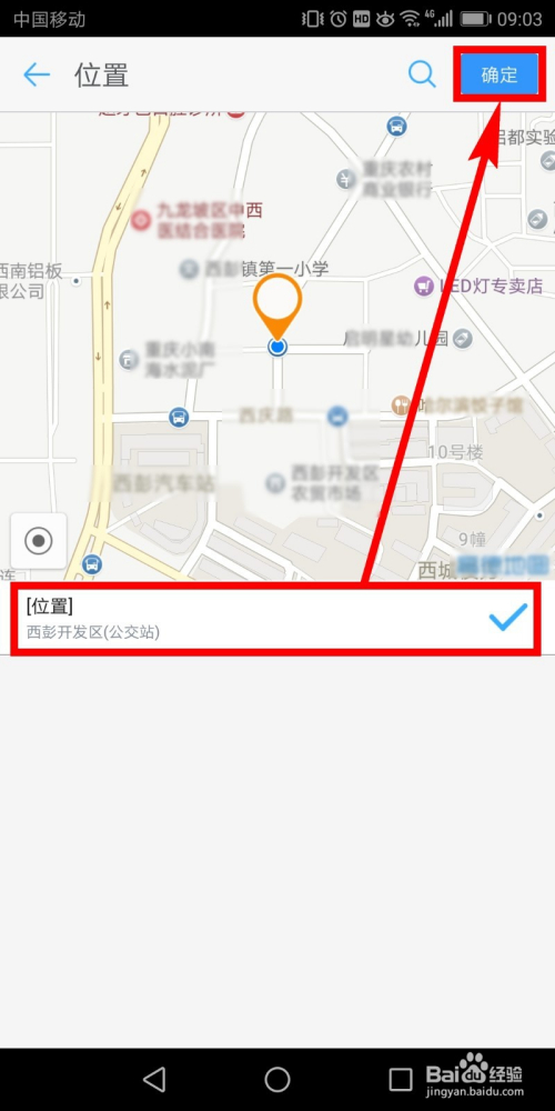 选择好后,页面中就会呈现你选择的地址,若是没有问题就点击页面右上的【确定】。