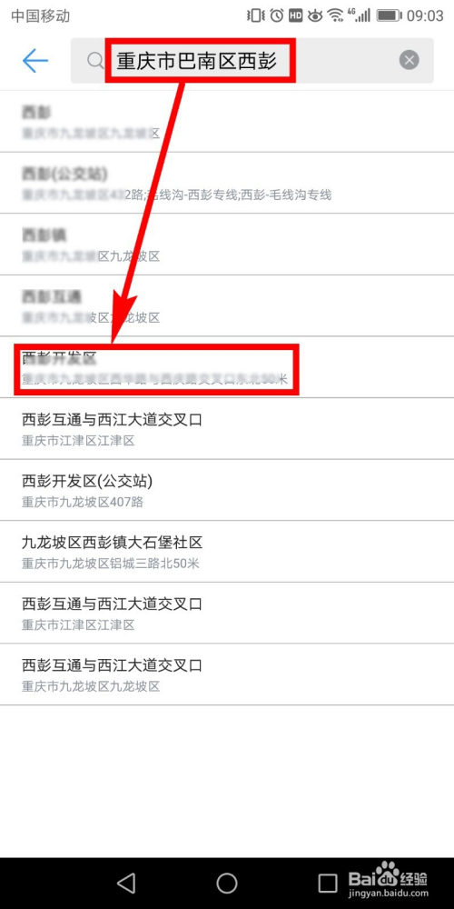 在搜刮栏中输入你要添加的地址信息,然后在搜刮成果中进行选择。