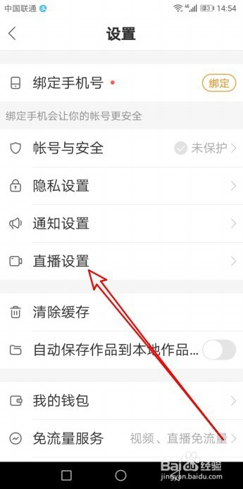这时就会弹出快手的设置页面,在页面中点击“直播设置”的菜单项。