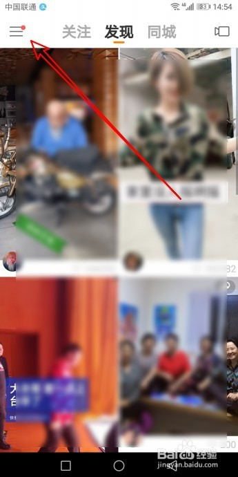 点击后就会打开快手的软件本家儿界面,点击左上有的“本家儿菜单”按钮。