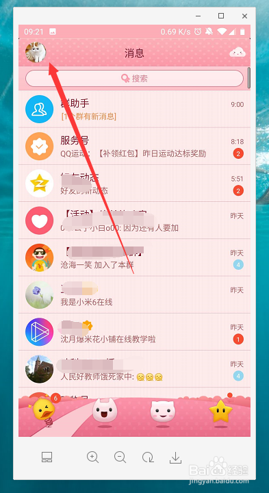 首先我们在QQ的本家儿页上打开左上角的小我头像,如图所示,点击这个头像。