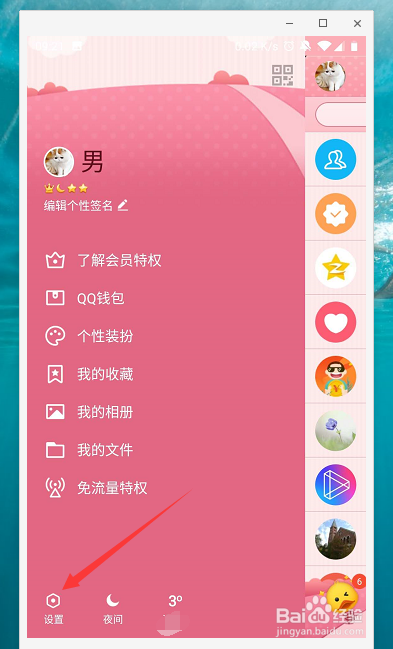 然后我们就可以看到左侧的菜单来,在左侧的菜单栏的最下面可以看到设置按钮,点击设置进入功能设置