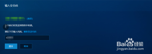 输入收到的短信验证码,点击“提交”;