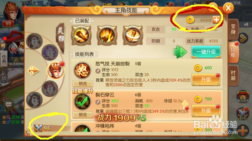 我们还可以选择一个一个技术的进级,感受哪一个技术危险高,技术冷却时候短,可以进级。