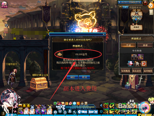 玩家进入频道今后,选择副本的难易度模式。选择模式今后,玩家还需要耗损15w游戏币才可以或许进图。不管是通俗仍是坚苦,费用都是一样的。掉败后从头进入不再耗损费用。