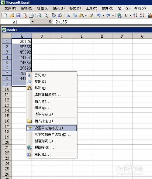 选中数值,点击右键,选择“设置单位格格局”,如下图
