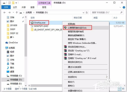 解压完当作后,右击以办理员身份运行“OneKey.exe”(系统安装器)