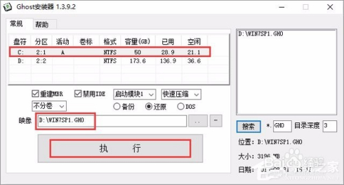 选择列表中的系统盘(默认C盘),选择“WIN7SP1.GHO”(装win几显示win几,这里是win7)映像文件,点击“执行”。会提醒是否重启,点击是,系统将主动重启并进行安装。