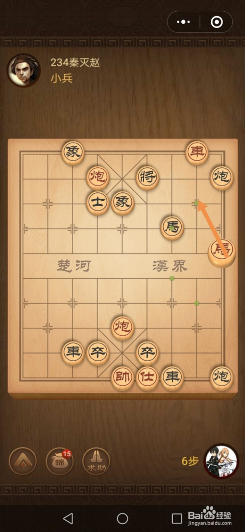 第六步馬移动到下图中箭头标注的位置就过关了。