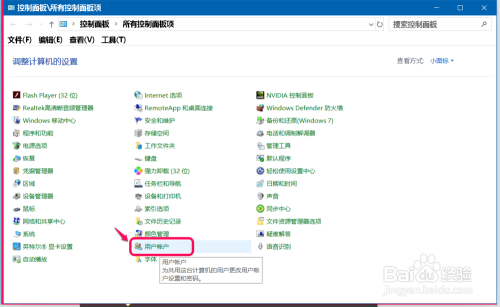 在用户帐户 - 办理帐户窗口,我们可以看到: