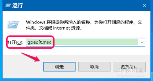 在运行对话框中输入:gpedit.msc 号令,点击确定或按下键盘上的回车键,打开当地组策略编纂器窗口;
