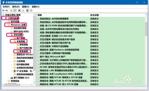 计较机设置装备摆设 - Windows设置 - Windows设置 - 平安设置 - 当地策略 - 平安选项;