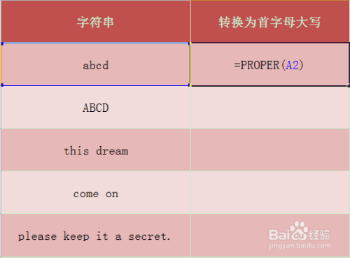 - PROPER函数在将首字母年夜写的同时,会将其他字母小写,请看演示成果;