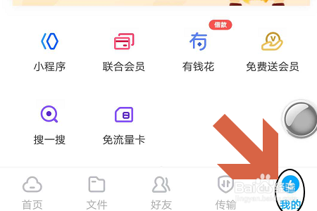 首先打开最新版百度网盘APP,然后点击首界面右下角的“我的”这一项,如下图所示...