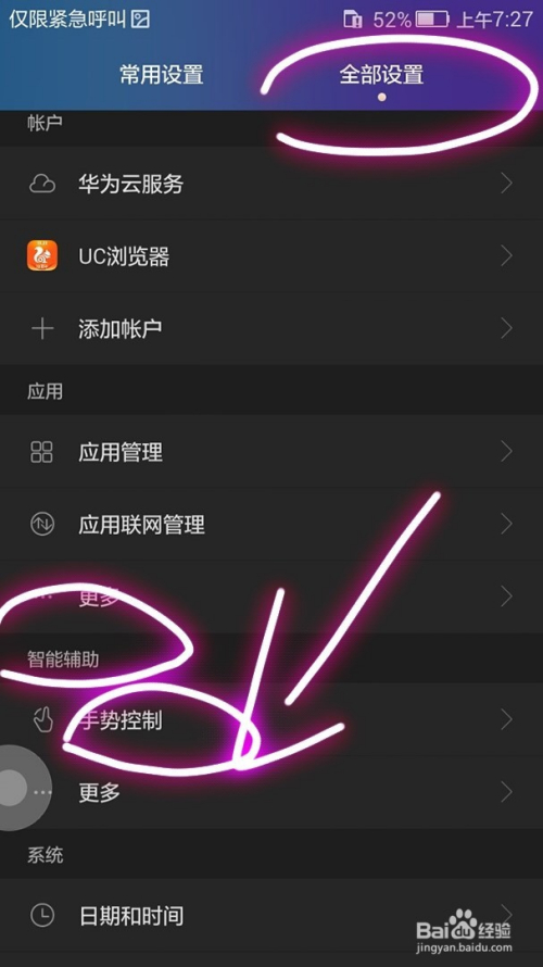 我们可在智能辅助模块中看到手势节制设置选项,点击选择该选项;