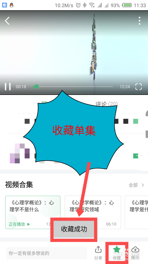 点击保藏后,同样会有文字提醒保藏当作功,保藏的图标也会有转变,视频就保藏当作功了。如图所示