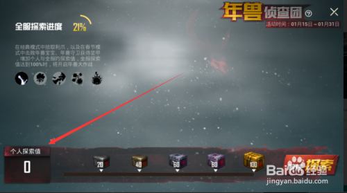 从页面上我们可以看到当拾取的利爪和坚甲可以增添全服的搜刮进度,就是页面左上角显示的进度百分比