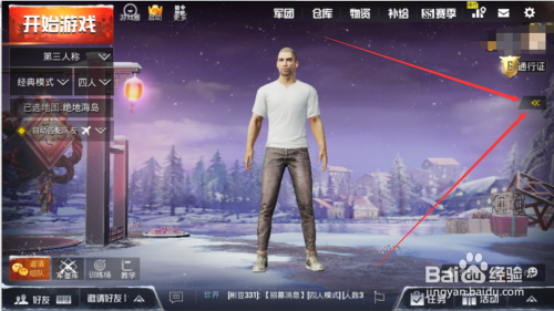 首先大师在新版本刺激战场中点击页面右边的【箭头】符号