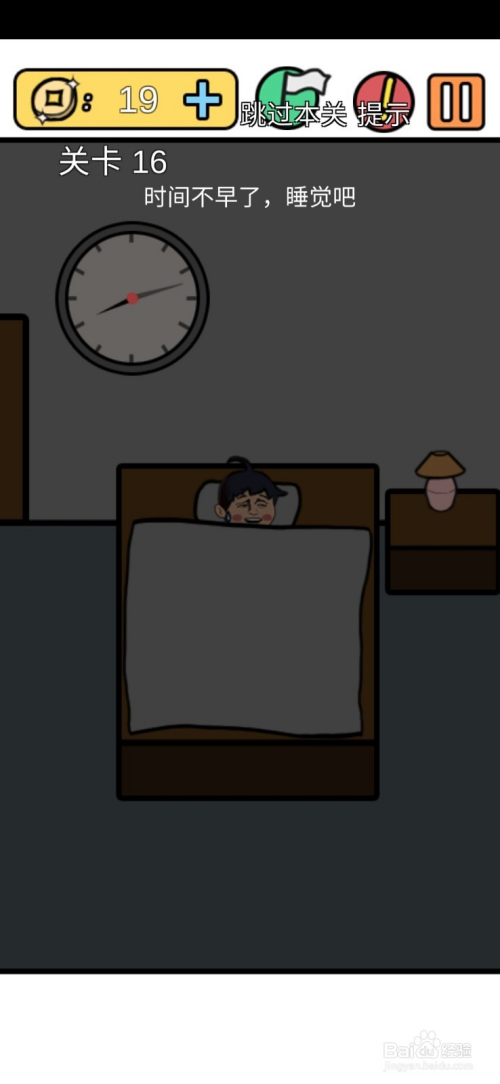 第16关先点击台灯,然后将钟上的时针调到八的位置就过关了。