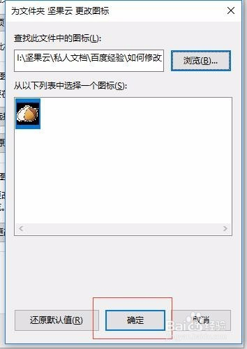 选中打开后,我们可以看到文件图标改换的预览,若是没问题则点确定。文件夹图标就点窜当作功了。