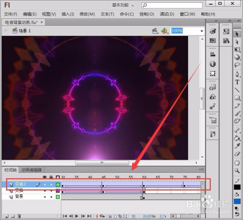 一个简单的电音布景动画就做好了,接着插入电音文件就可以了。