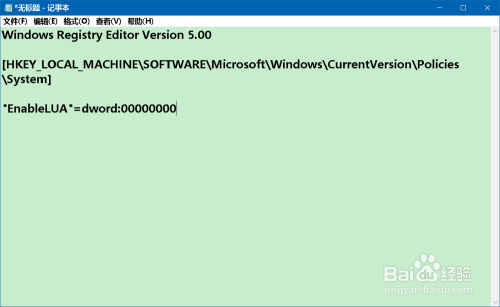"EnableLUA"=dword:00000000