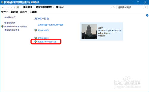 进入节制面板,点击:用户帐户;