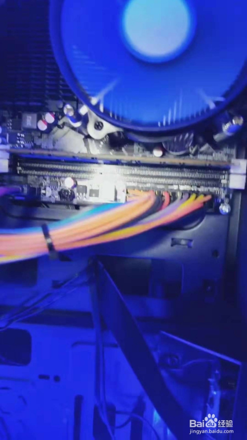 首先断电(平安操作)打开电脑机箱侧盖,找到如图所示内存条。