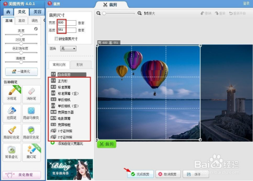 第三步:在左上角输入裁剪尺寸或者选择常用比例,单击“完当作裁剪”。