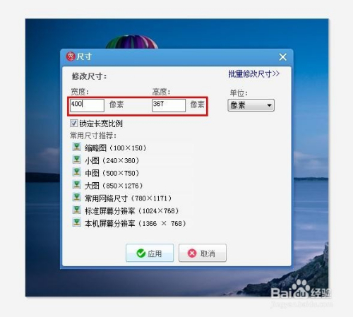 按照本身的需要输入要设置的宽度和高度,单击“应用”按钮,完当作操作。